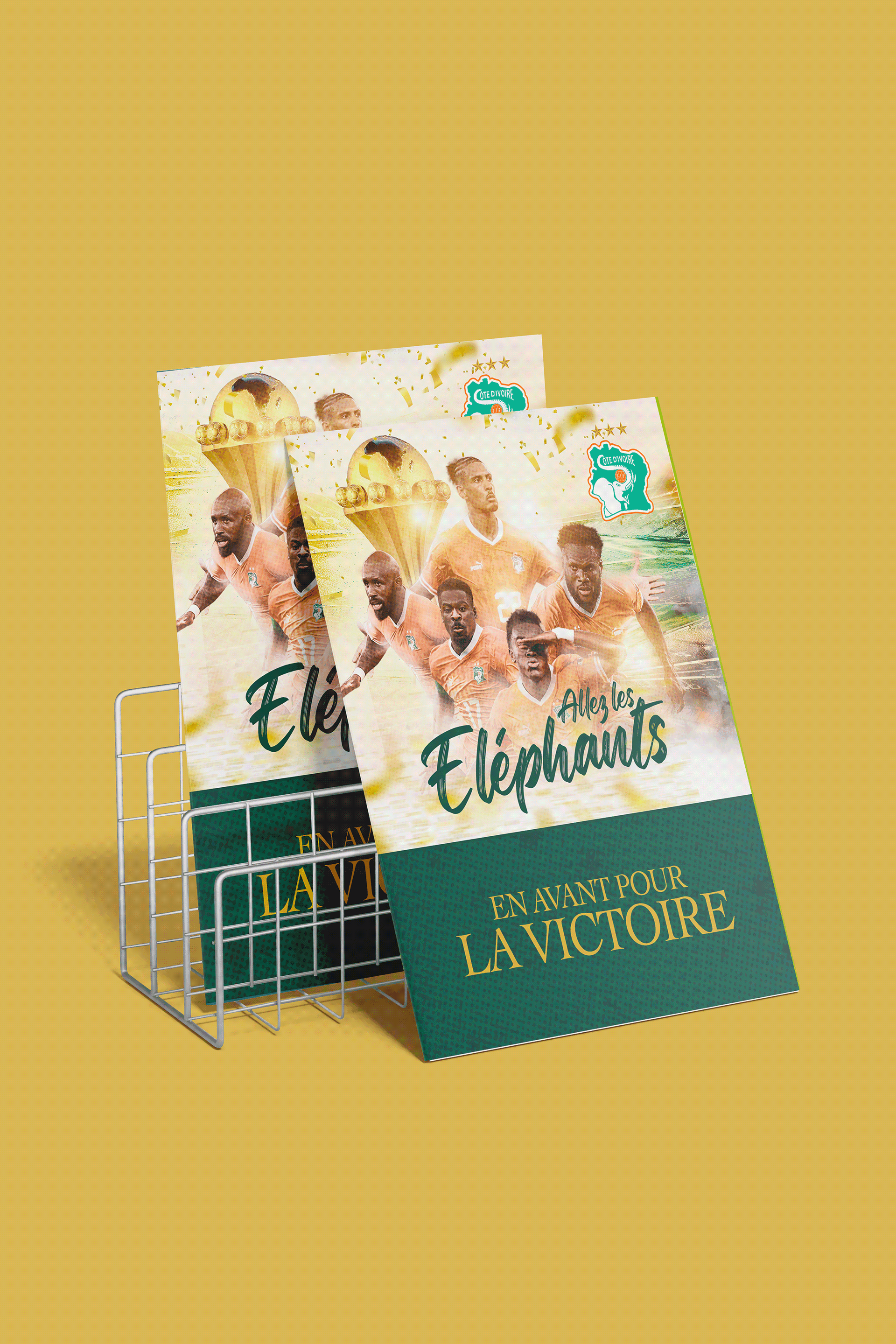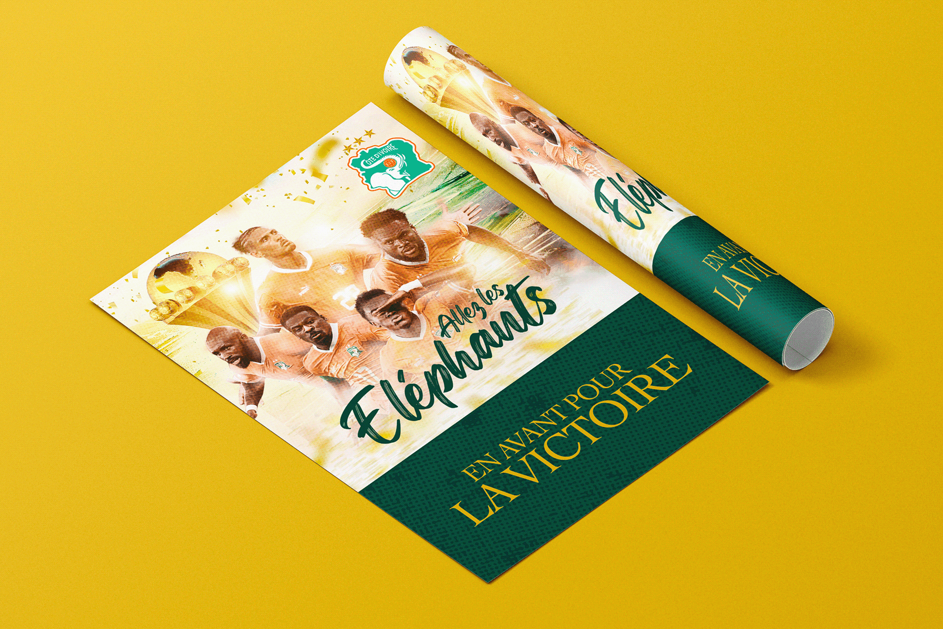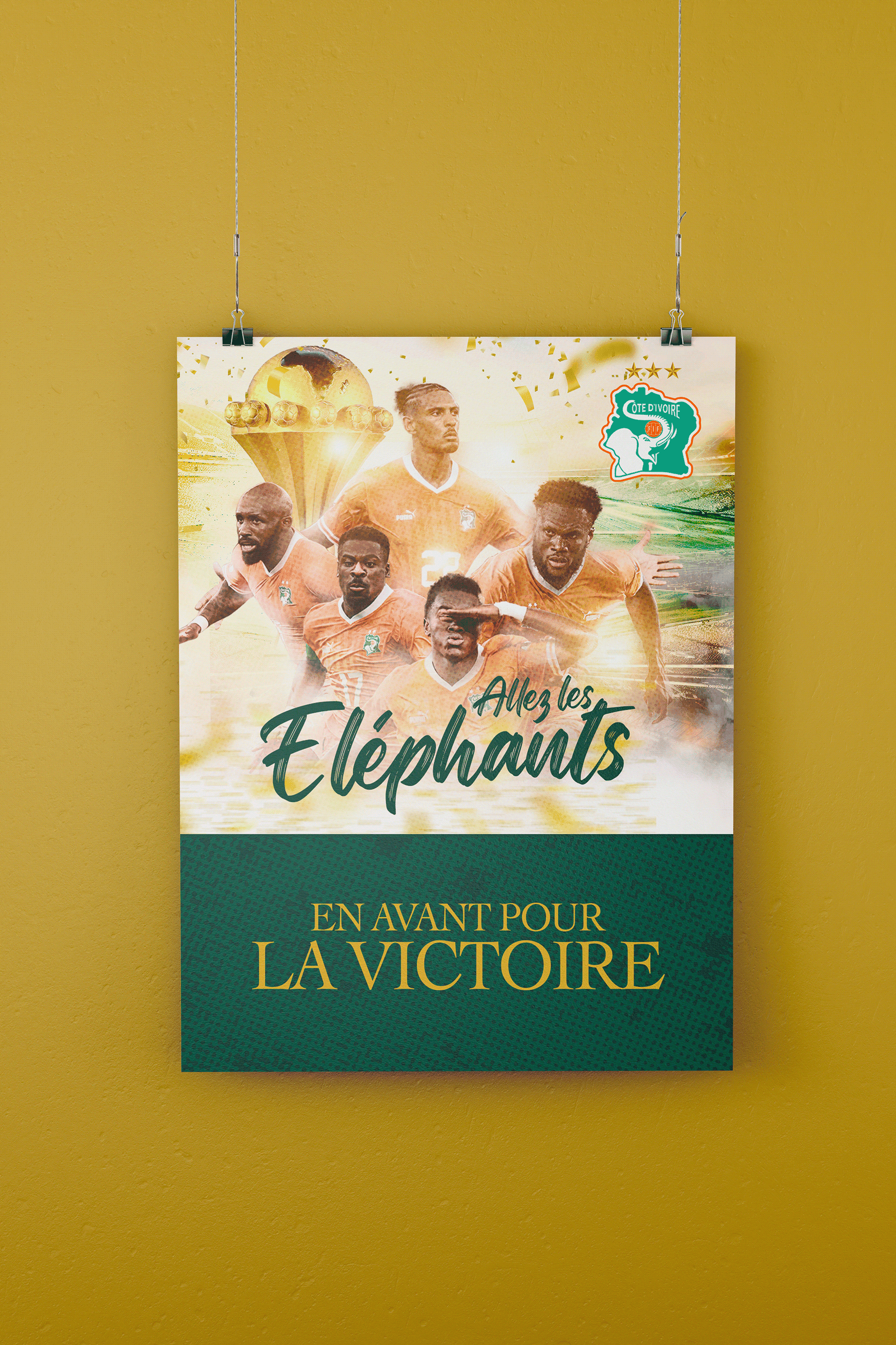 Pour ce projet lié à la CAN, j'ai conçu un visuel qui capture l'essence de la "Renaissance" ivoirienne. Mon intervention a consisté à :